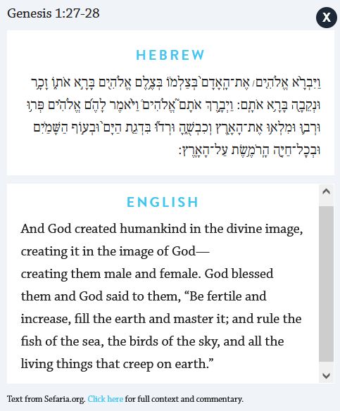 Wichtig ist die hebräische Fassung der Schöpfungsgeschichte, in der es heißt: